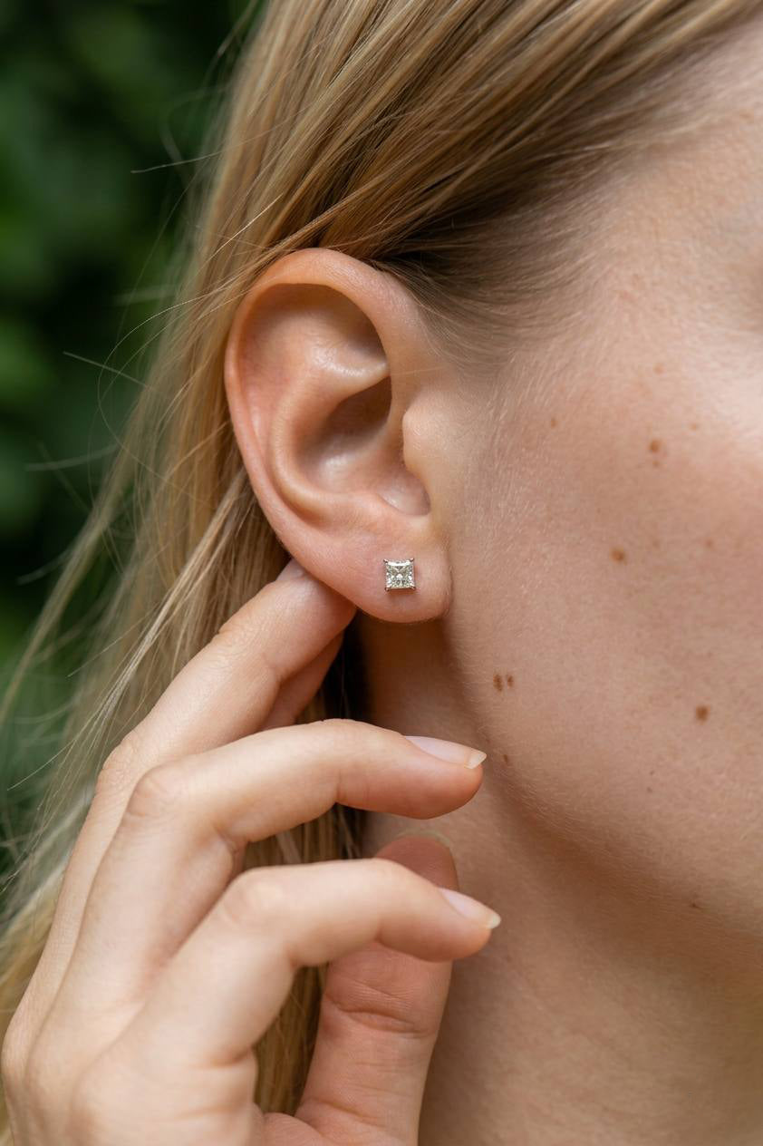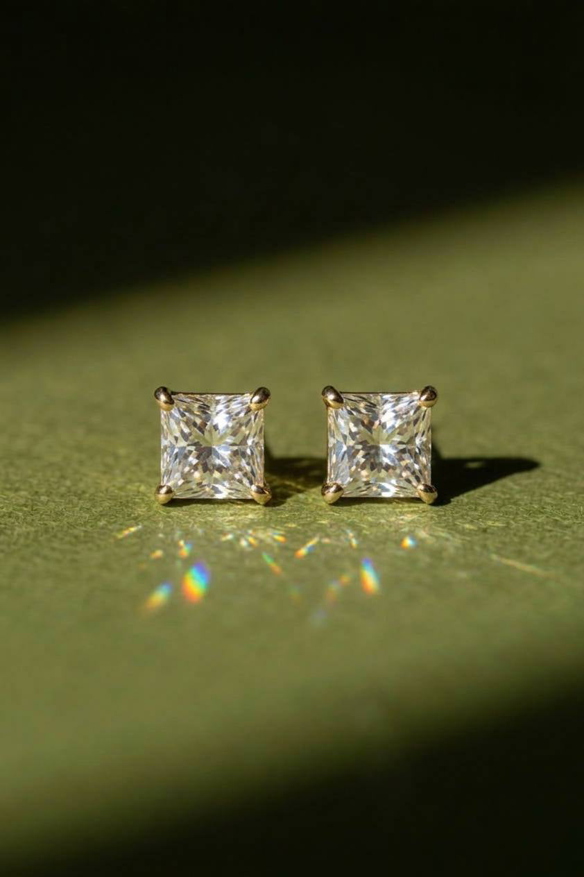 Золоті пусети з діамантом Принцеса