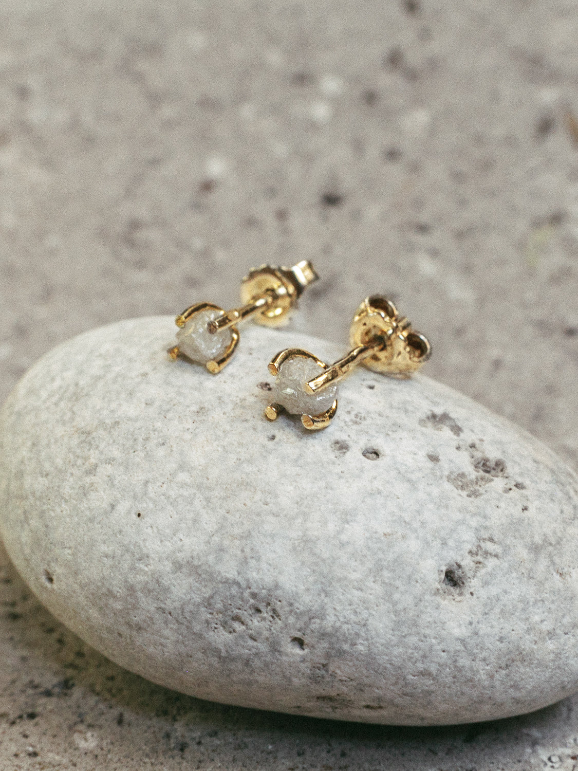 Сережки можуть бути виготовлені зі світлими, темними або медово-жовтими алмазами на вибір. Алмази в цих прикрасах — необроблені, тож кожен камінь унікальний. Форма, блиск і посадка можуть трохи відрізнятися — це природна особливість «необробленого алмаза».