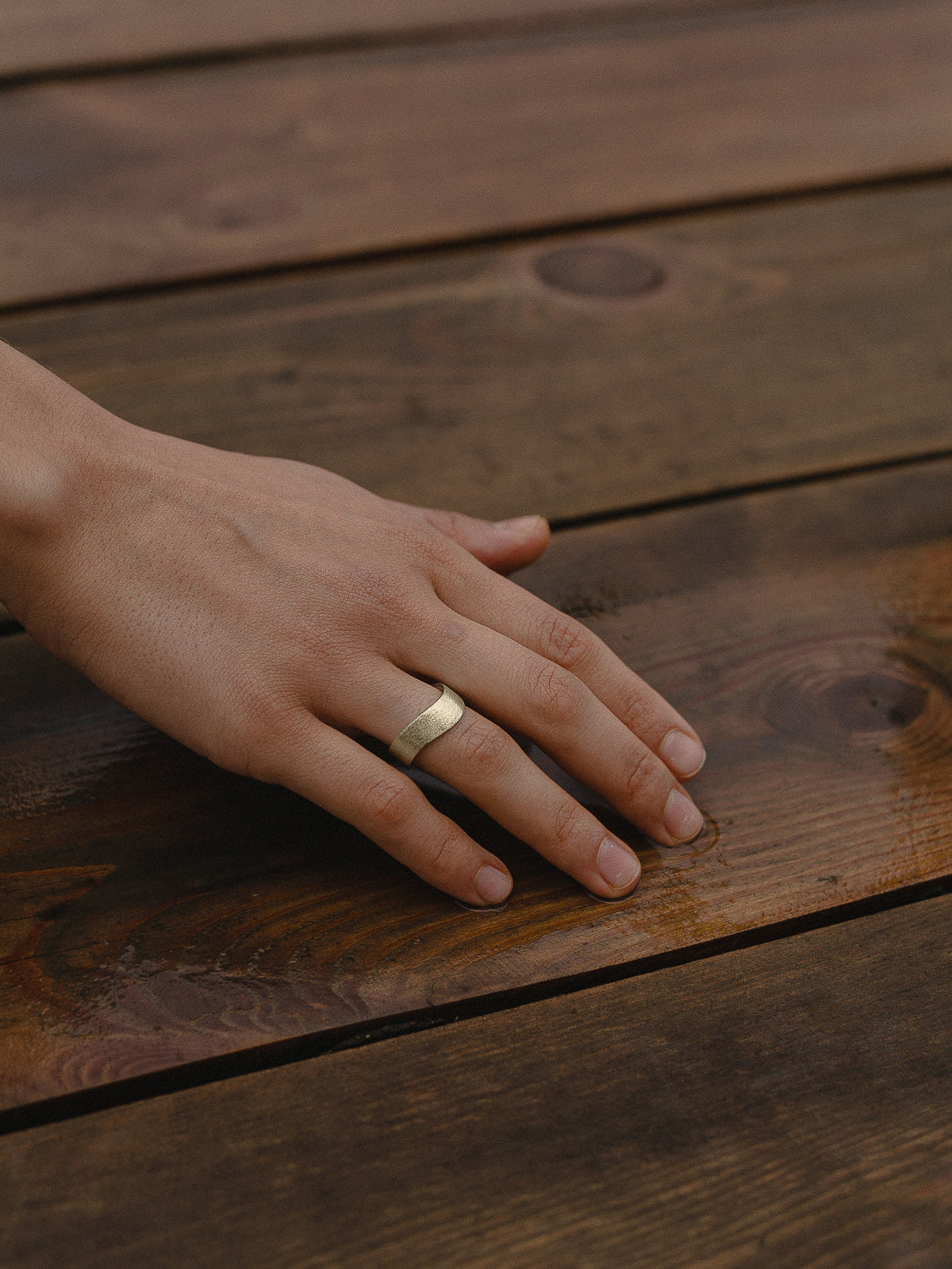 Може бути полірованою або матованою. За замовчуванням поверхня матована. Матовість створюється проведенням напильника виключно вздовж кола каблучки, залишаючи довгі, відносно рівні ніби хвилі на поверхні.