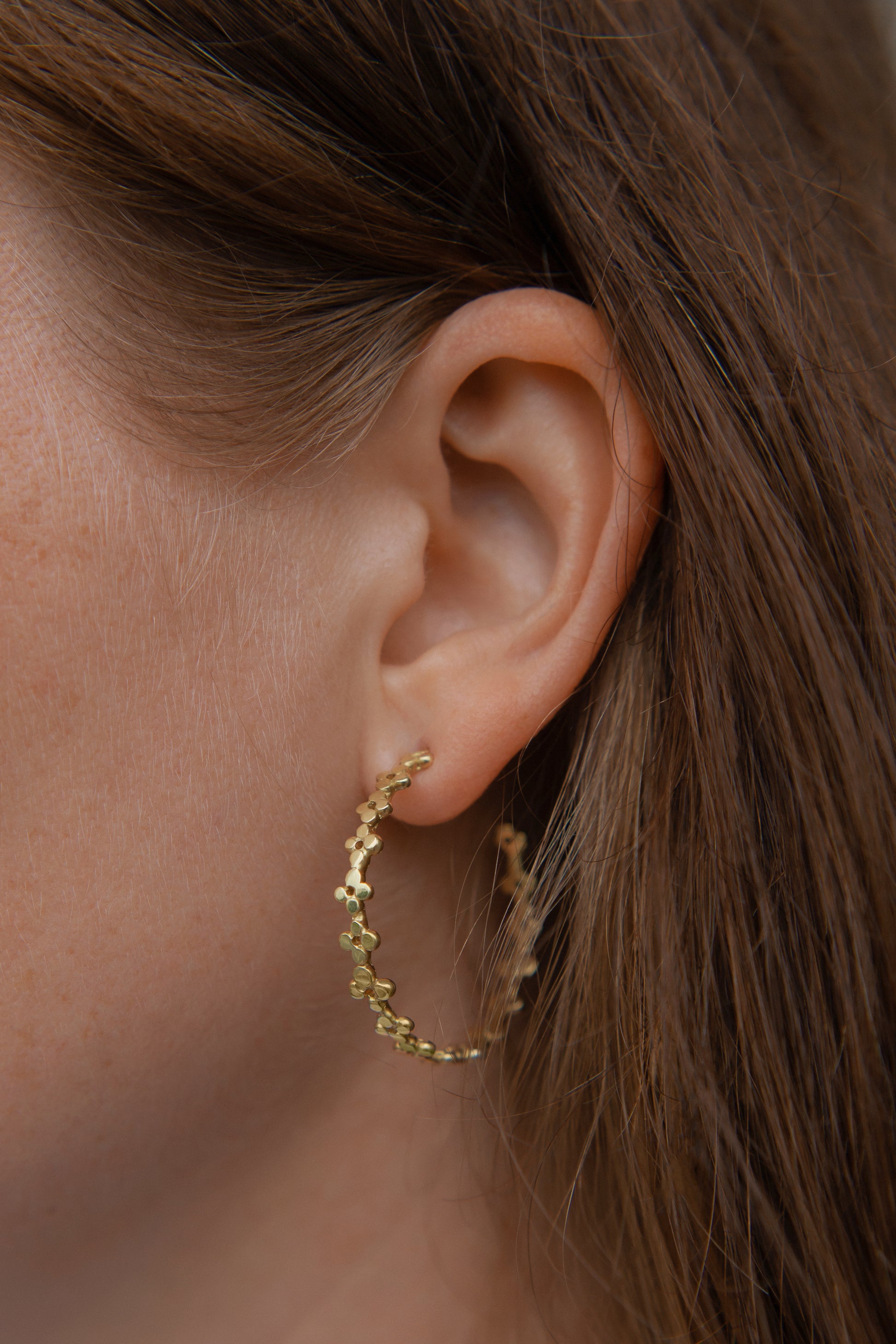 Сережки Квіткові Хупи. Можуть бути з камінцями або без.