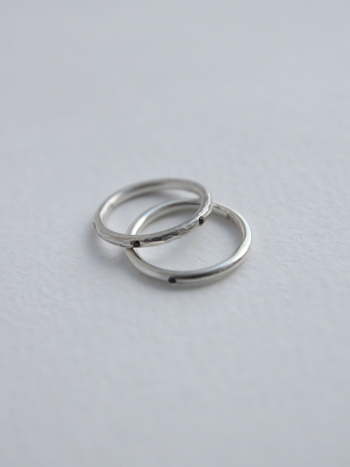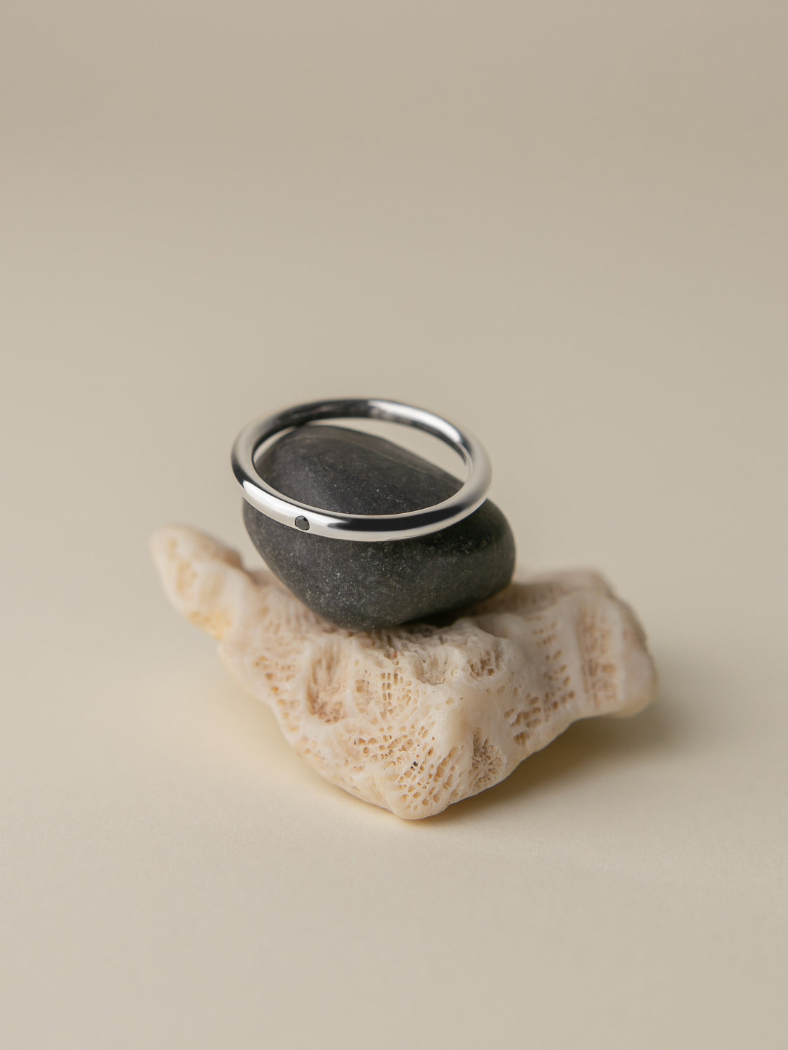 Polished surfacesalso require special care. Silver is a soft metal, so scratches appear faster than on gold. To maintain the mirror shine of your rings for as long as possible, we recommend periodically polishing them at a jeweler or regularly wiping them with a soft cloth.